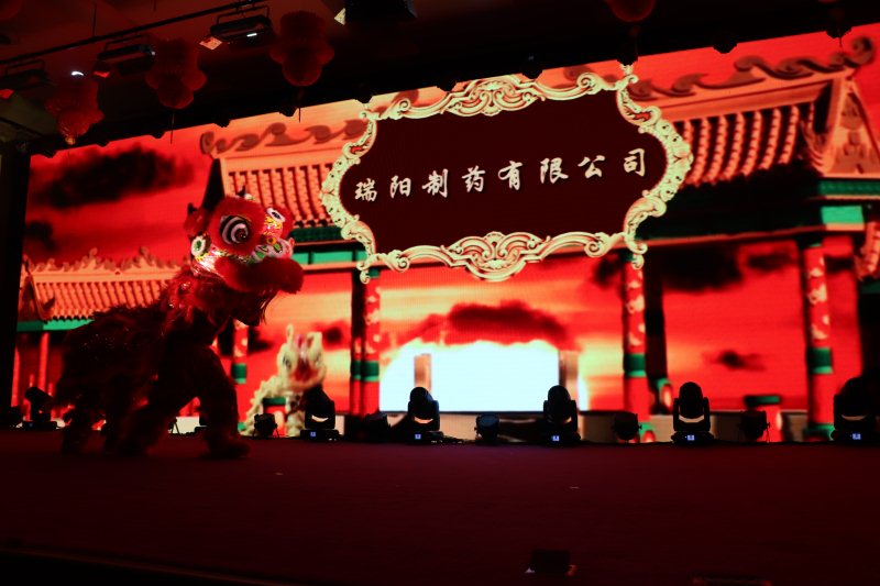 輾轉(zhuǎn)騰挪雄獅舞財(cái)運(yùn),翻飛跳躍新春送祥瑞。在苗董為雄獅點(diǎn)睛之后,一頭充滿活力的紅色雄獅在舞臺上騰挪跳躍,寓意著瑞陽一枝獨(dú)秀,配合著大屏幕不斷轉(zhuǎn)換的場景,粉針事業(yè)部張希鵬、尹玉亮為大家奉上了華麗壯觀、惟妙惟肖的演出《雄獅助興》